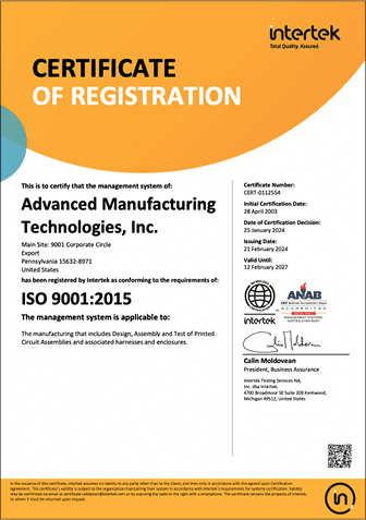 As an ISO 9001:2015 certified contract manufacturer of PCB and electronic chassis assemblies that are also IPC 610 and IPC JSTD compliant, you can be certain that we will control and maintain your products properly throughout the manufacturing process. Our quality process includes an environmentally controlled manufacturing facility, maintained equipment and employees trained to meet current PCB assembly and inspection standards, 3D optical and X-ray inspection systems, and a laser bar-coding system for product traceability. We pride ourselves on being an OSHA-compliant facility that completes jobs on time, on budget, and to your exact specifications.